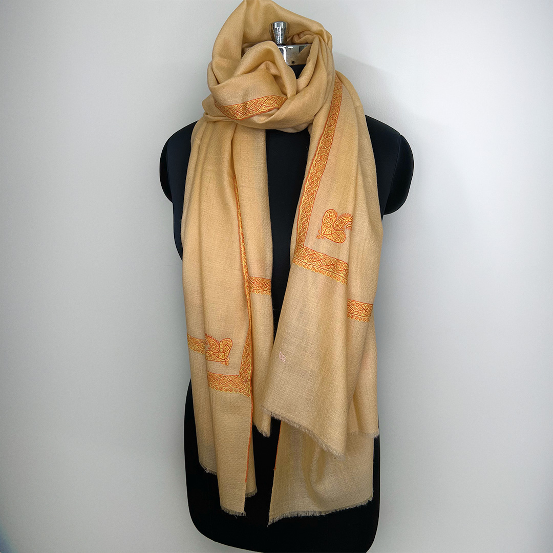 Whether draped over your shoulders for a chic evening look or wrapped around you for cozy warmth on a chilly day, each shawl is a work of art, handwoven by skilled artisans. Each piece bears the master embroiderer’s signature, embroidered in the corner.